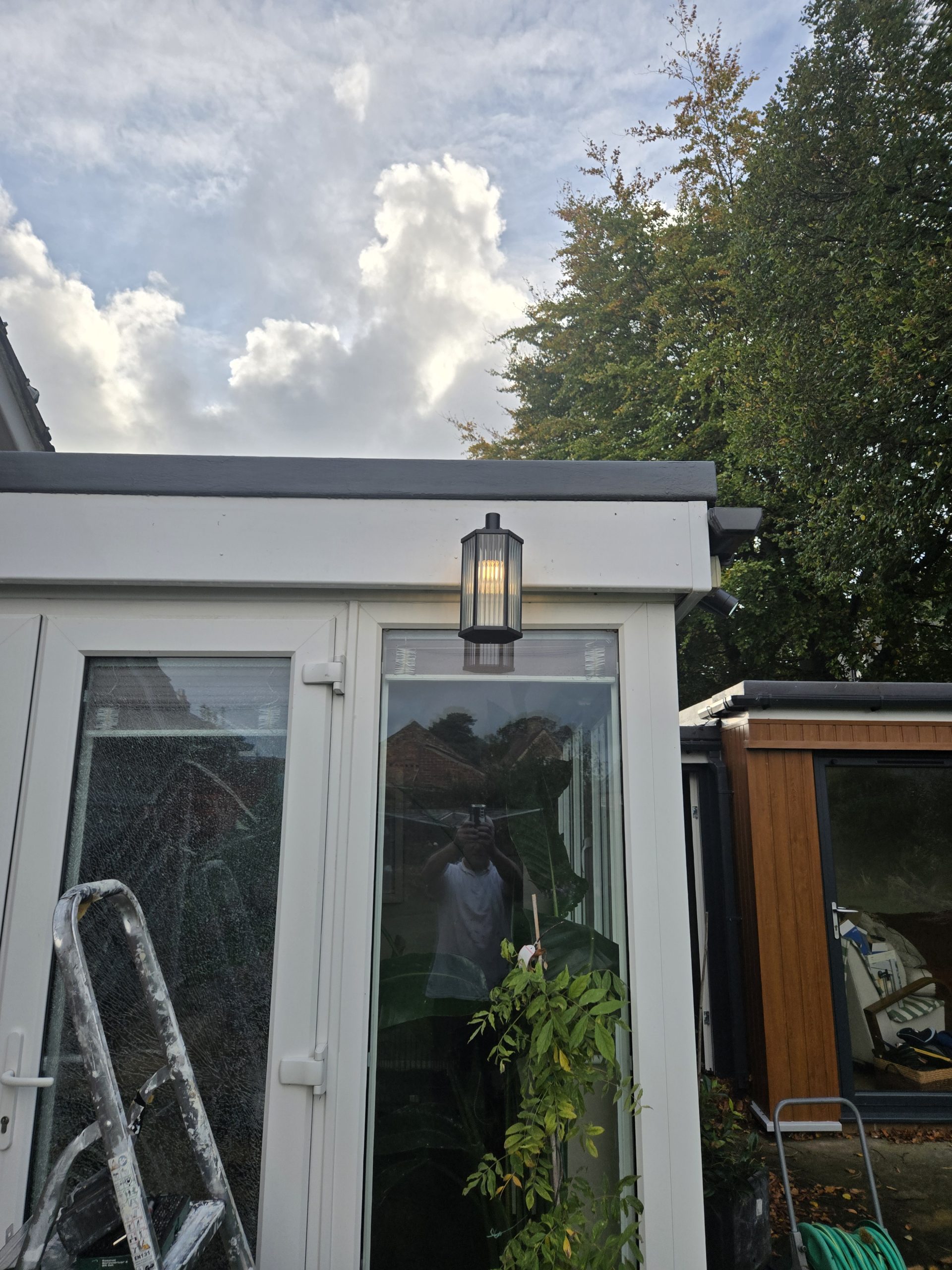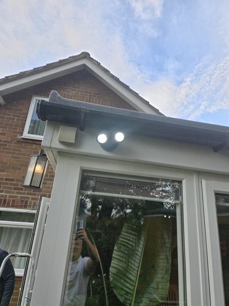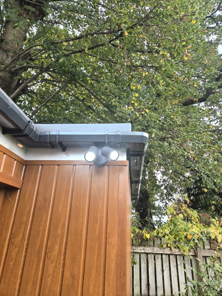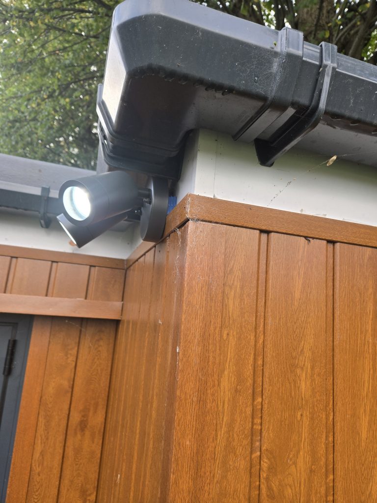 Fit 3 x customer supplied lights to outside facias to rear garden.