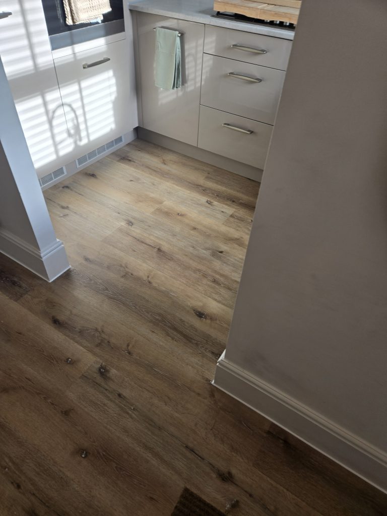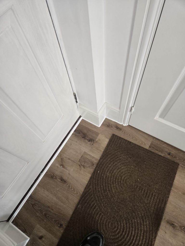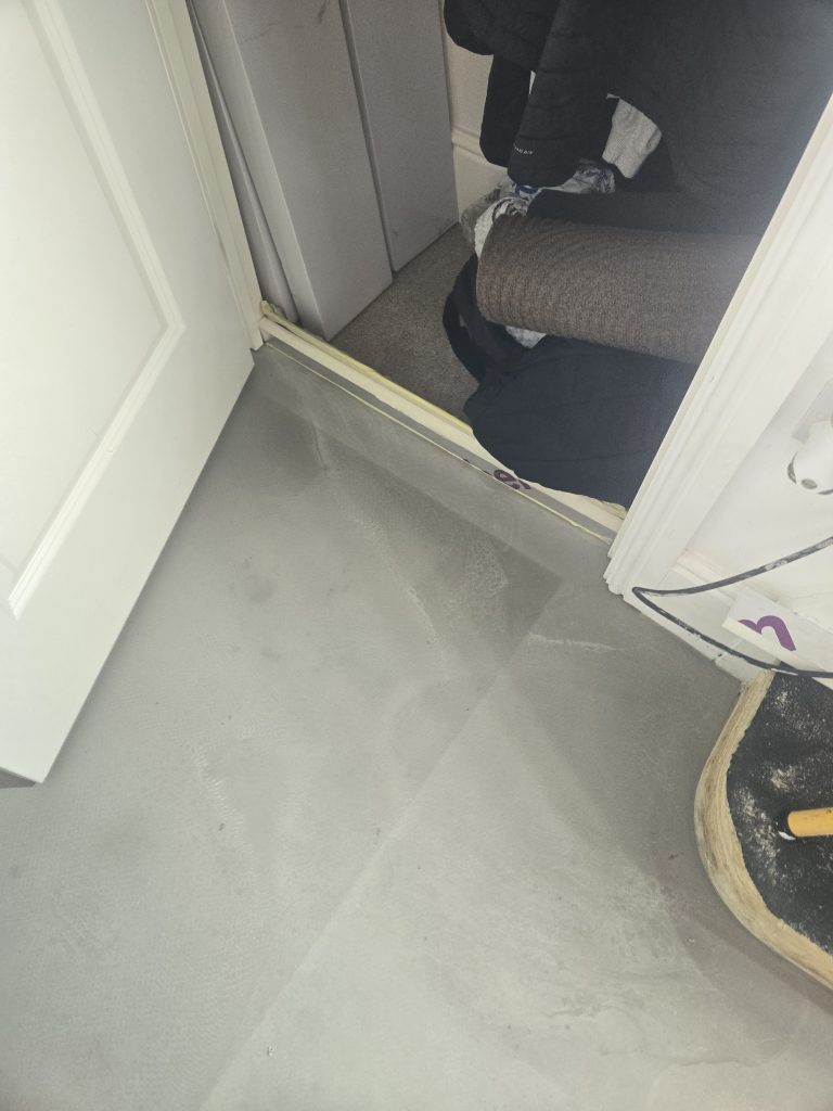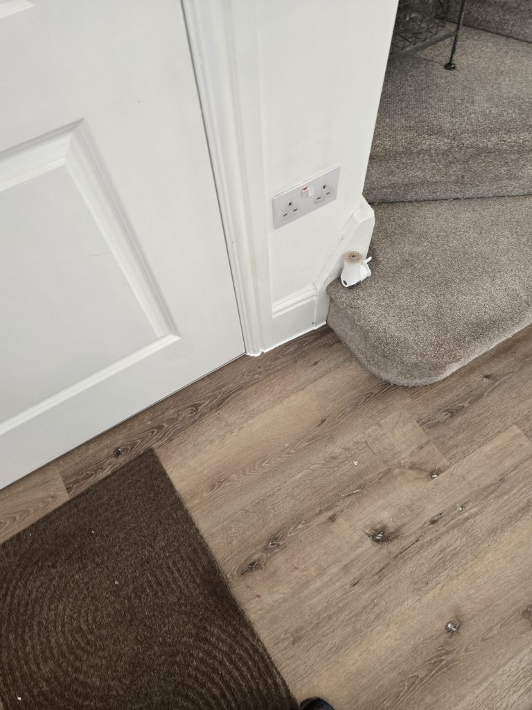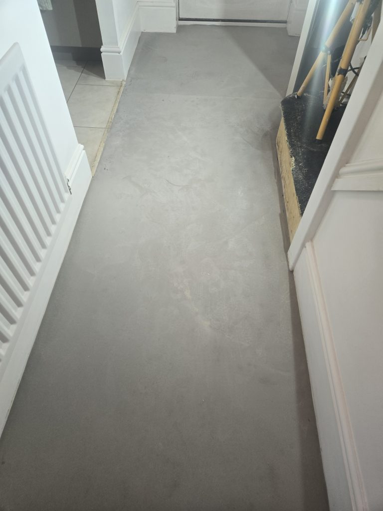 Removed existing flooring to hall. Supplied and laid self levelling. Fitted customer supplied LVT laminate flooring.