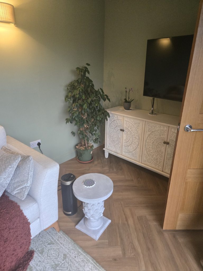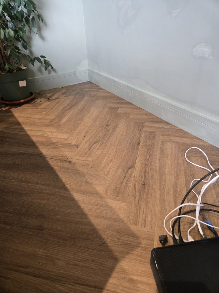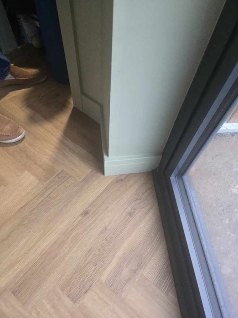 Supplied and fitted 1 x length skirting to rear lounge/sitting room. Painted as required