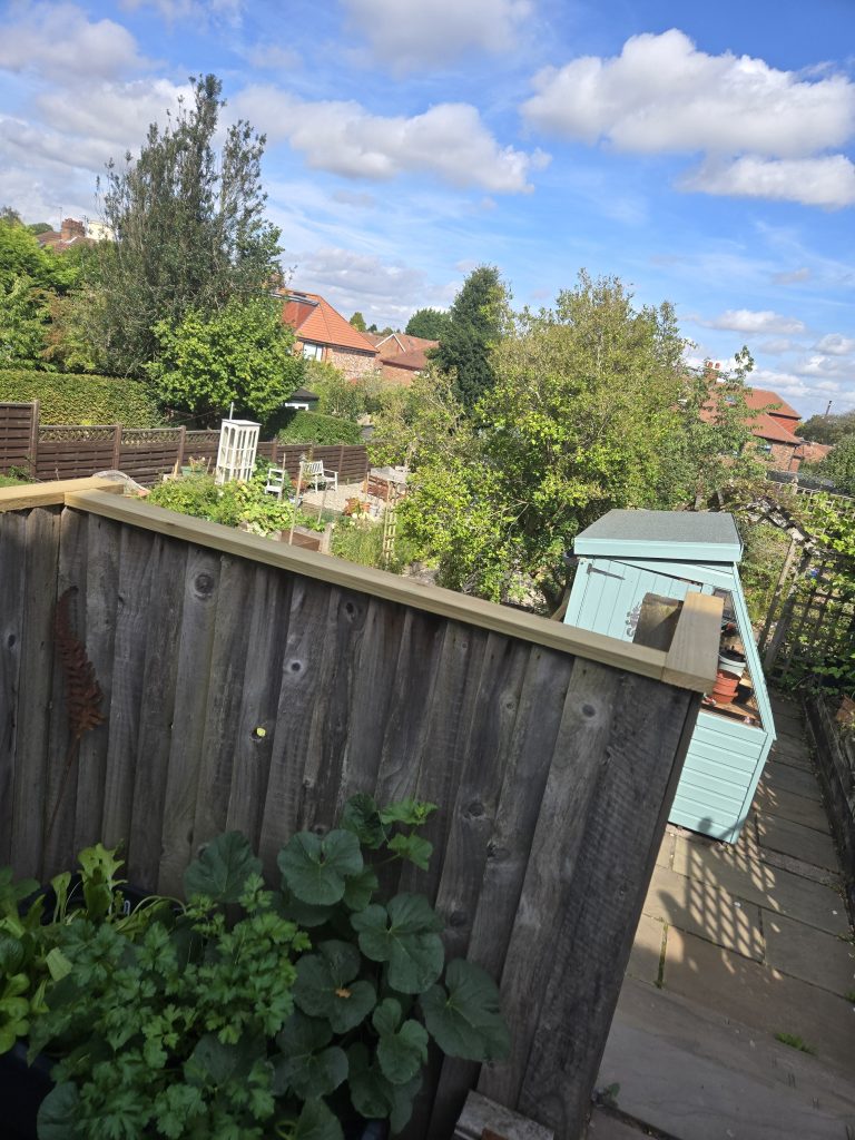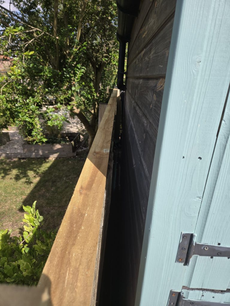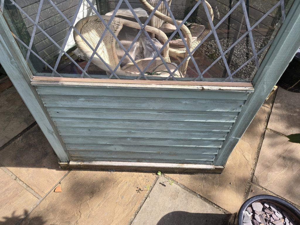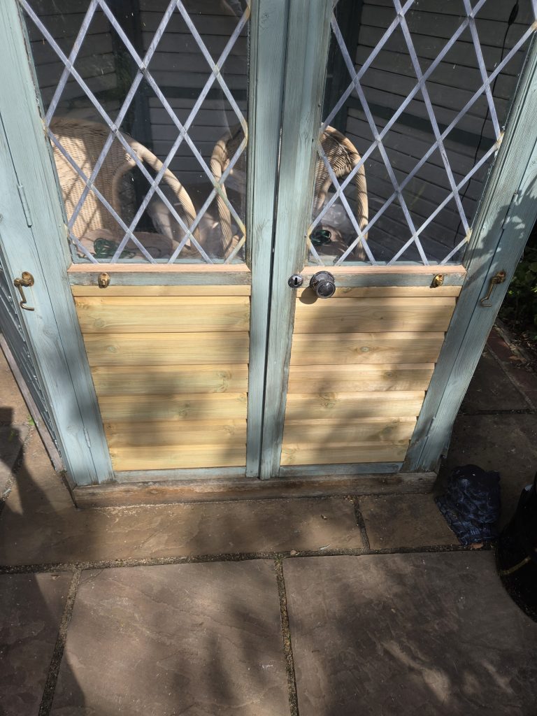 Supply and fit 2 x posts, fence tops, sill beading (Oak) and door cladding to summerhouse
