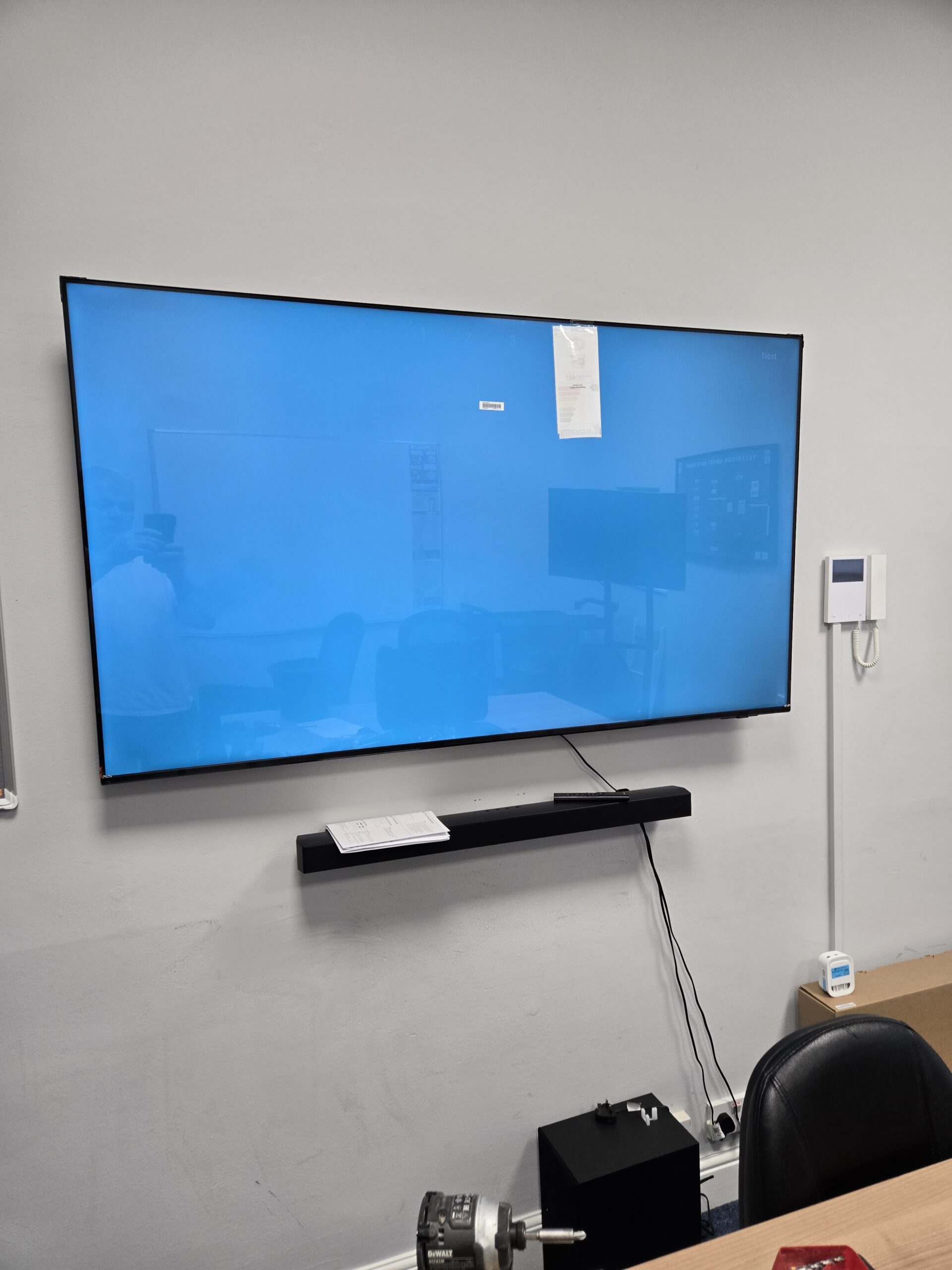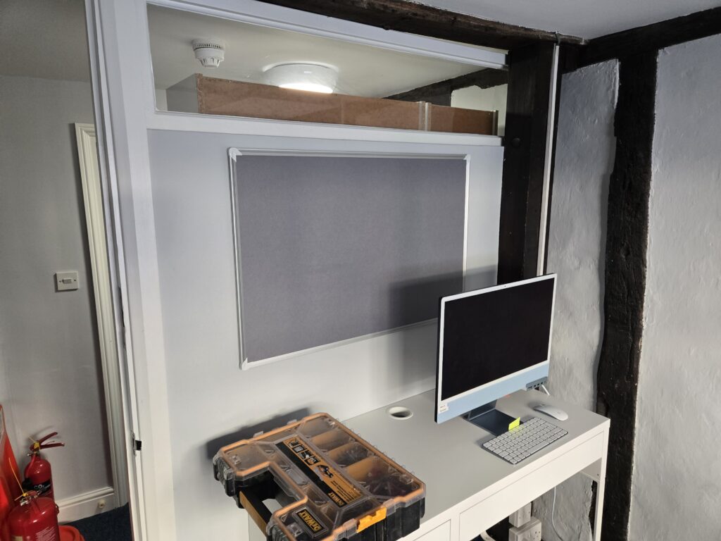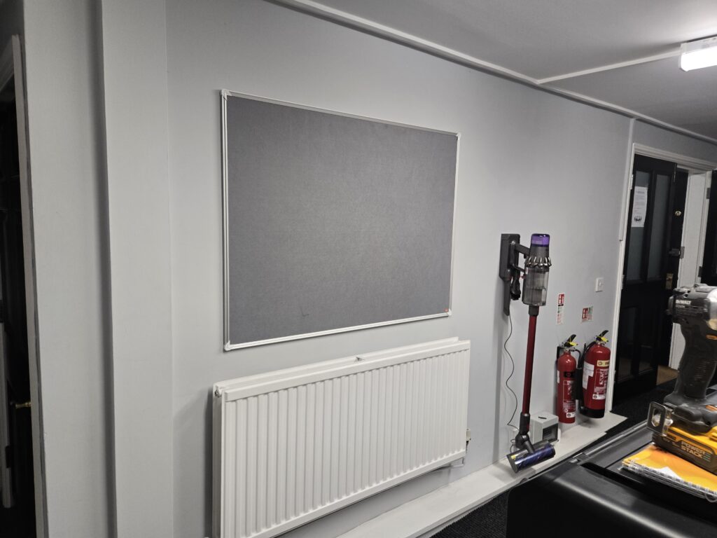 Fitted customer supplied TV bracket, TV & sound bar to meeting room. Fitted several notice boards.