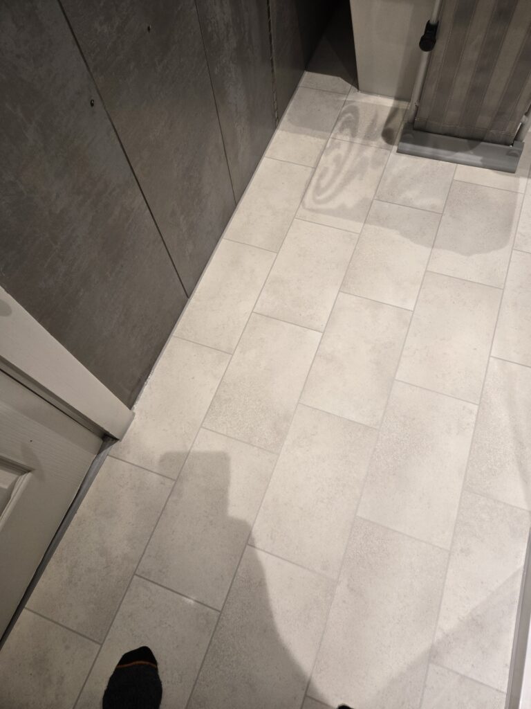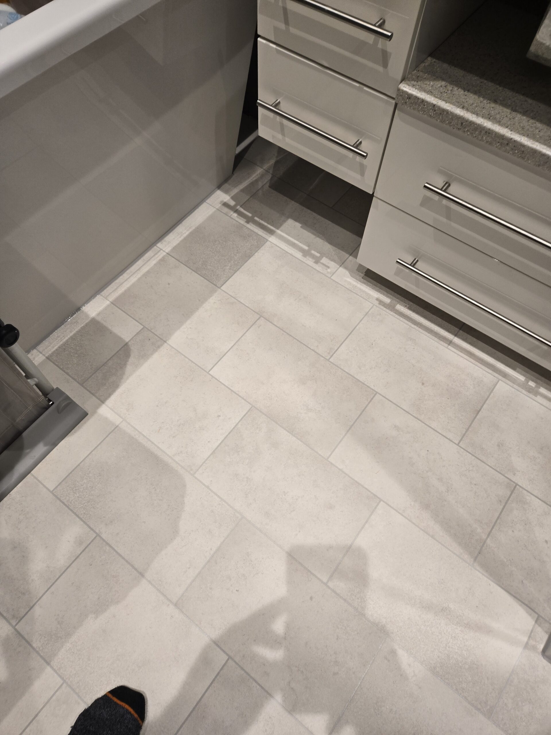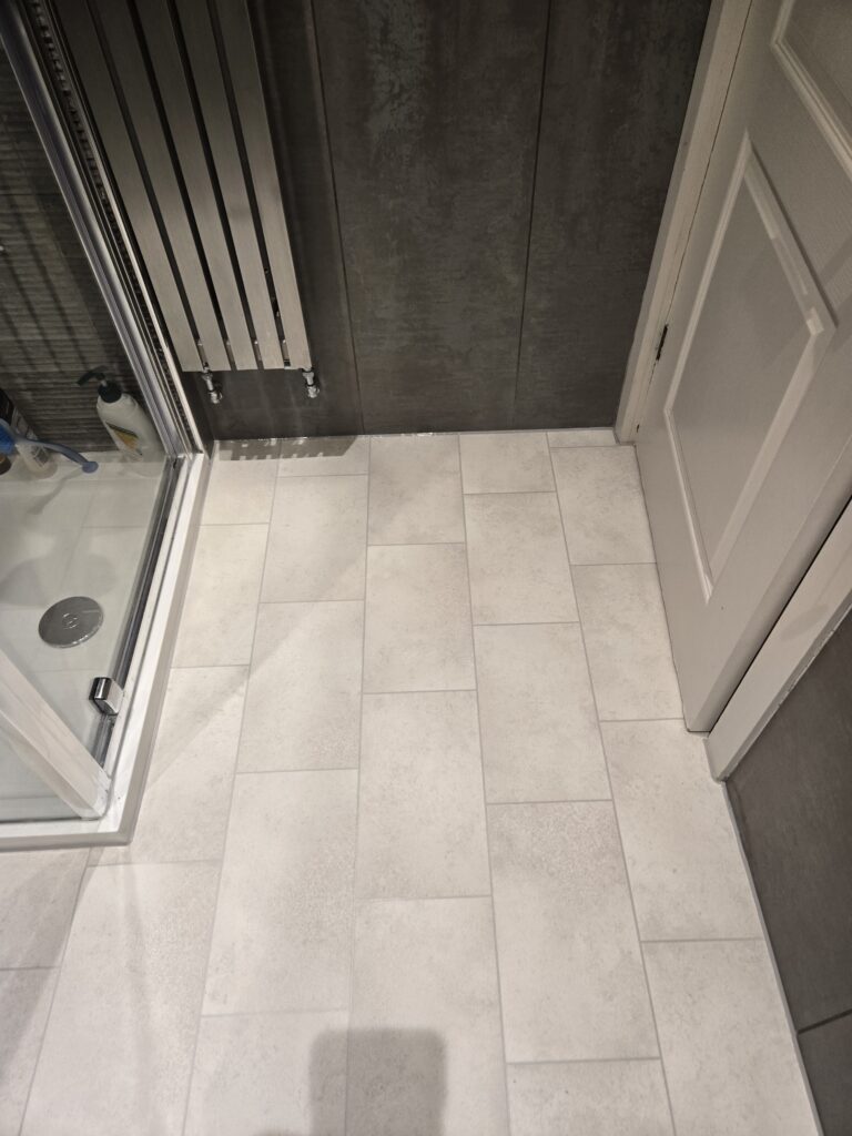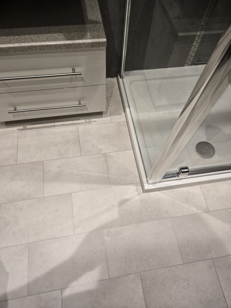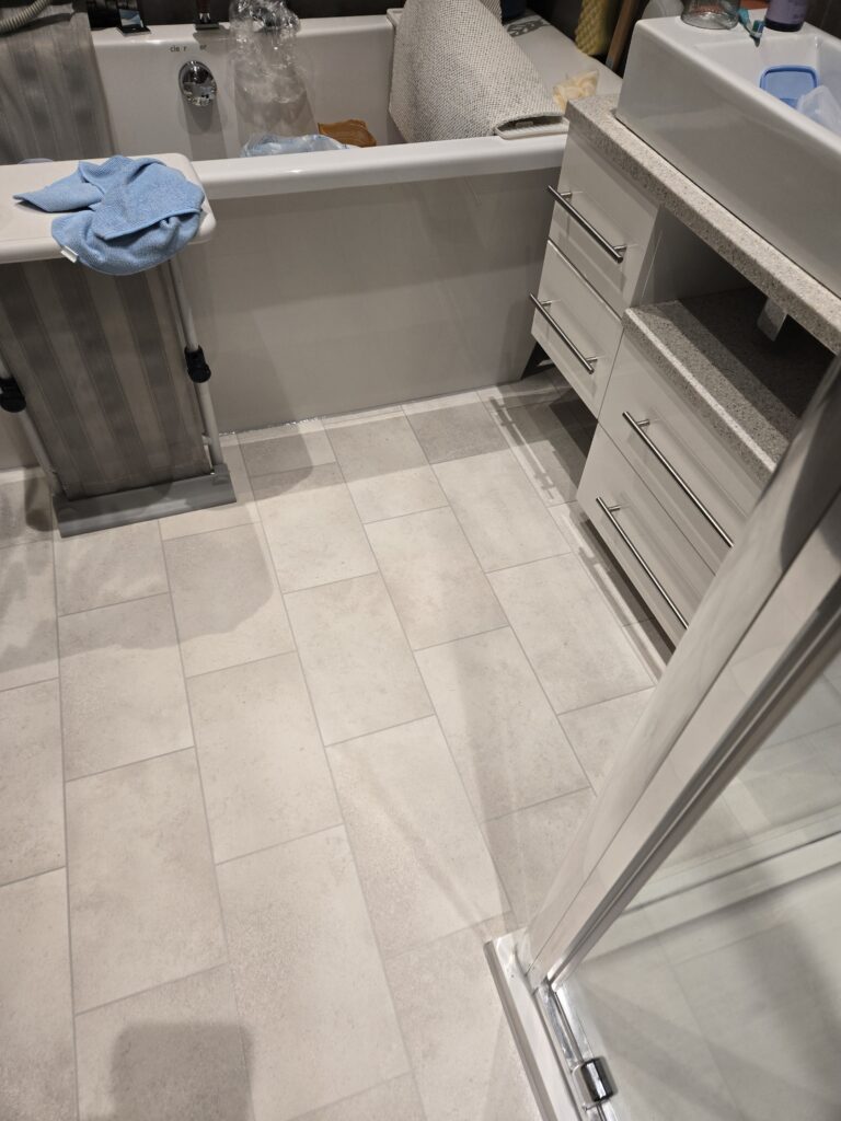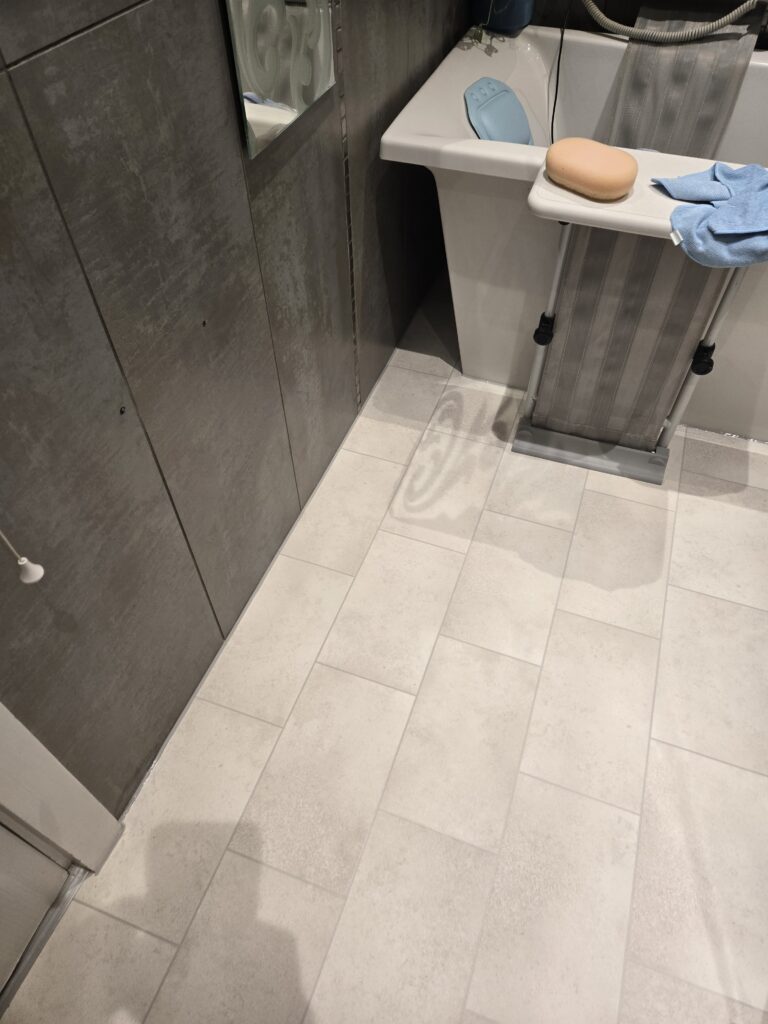 Laid self levelling compound down. Fitted vinyl to bathroom.