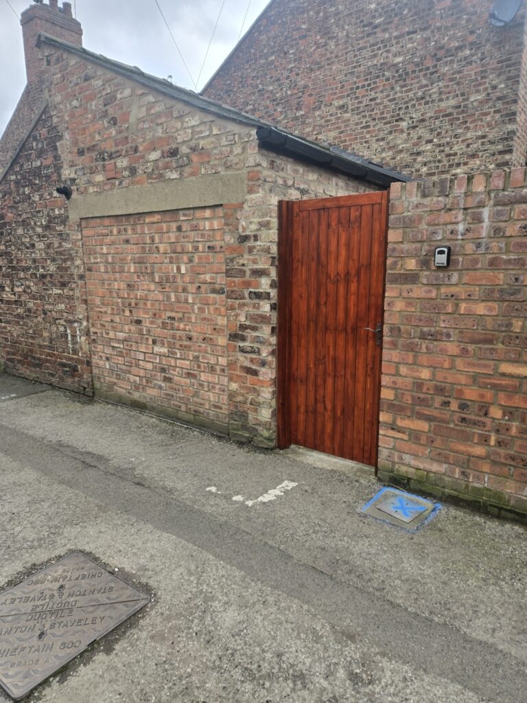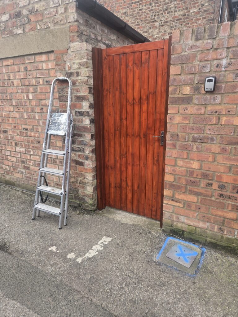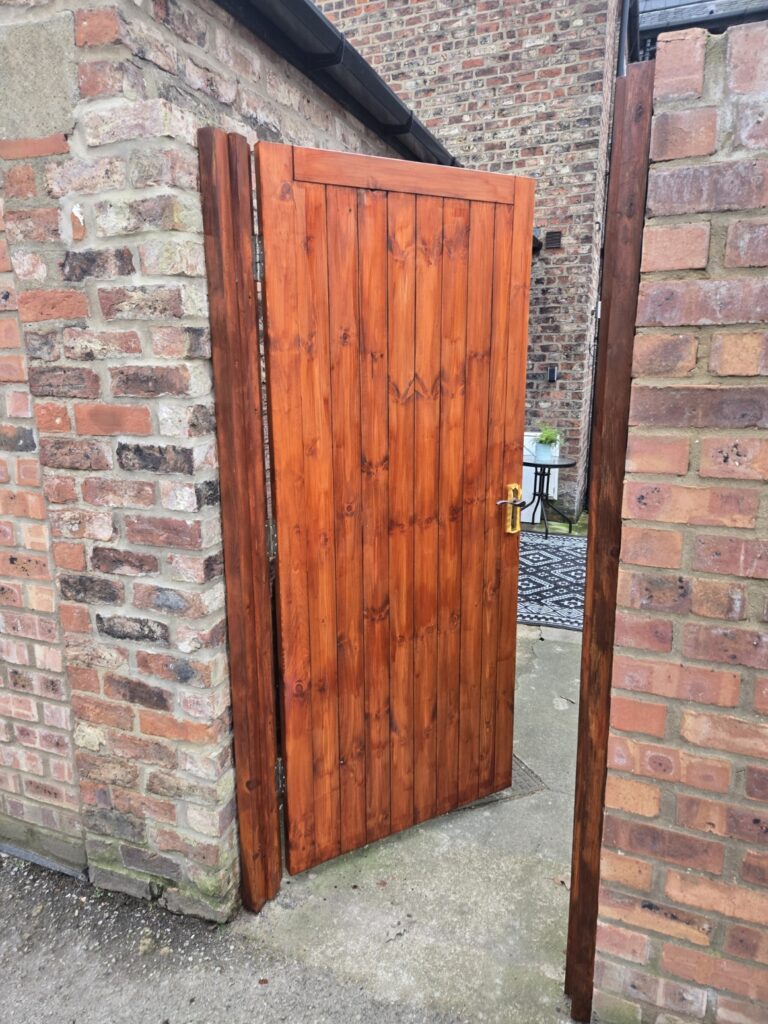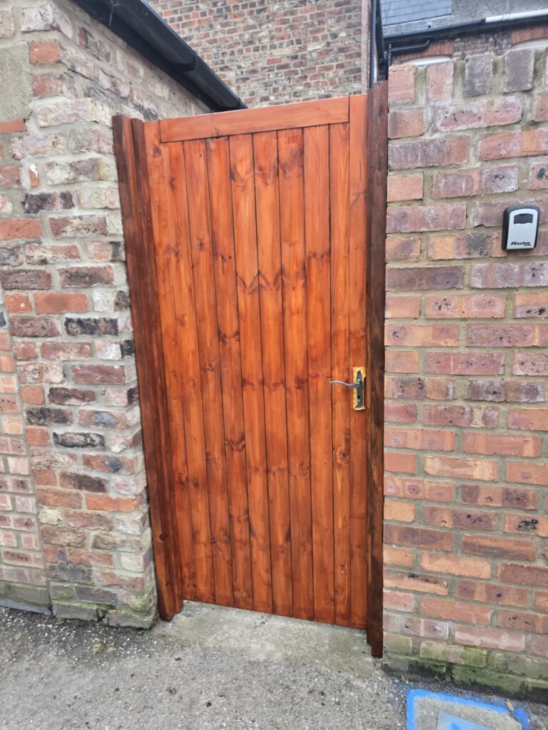 Repaired gate post and brickwork. Adjusted as required.