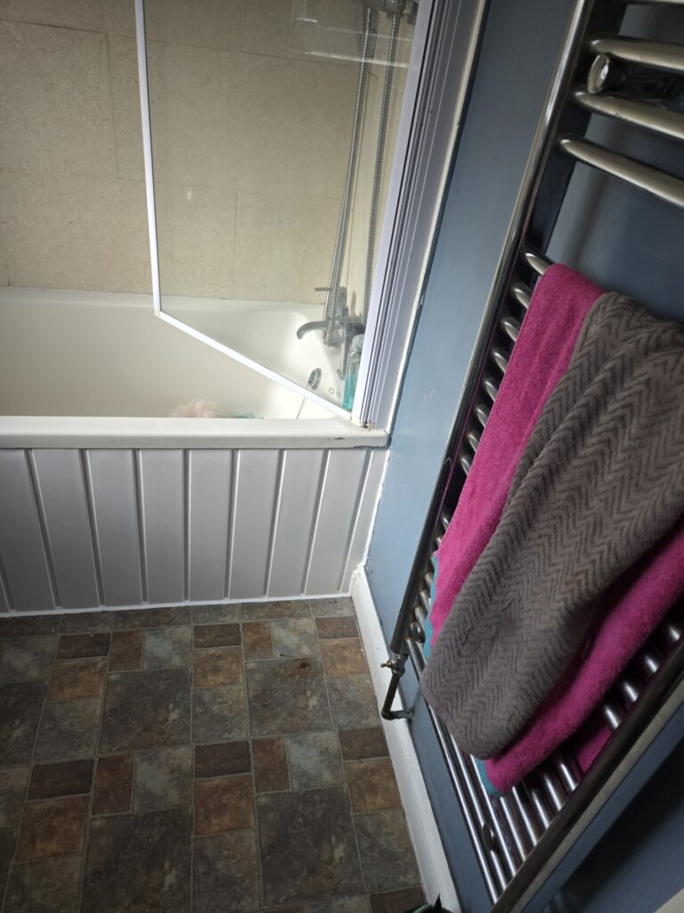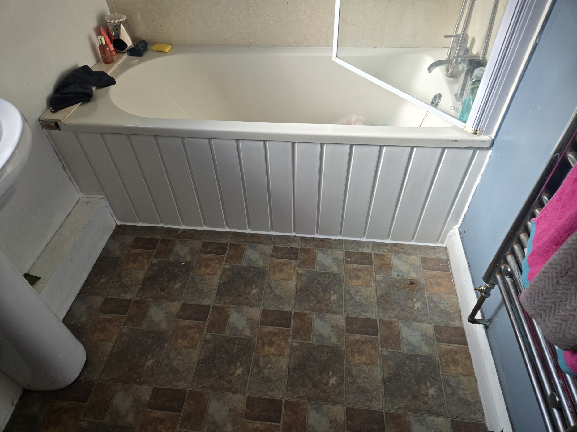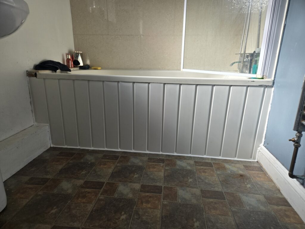 Supplied and fitted plastic cladded bath panel.