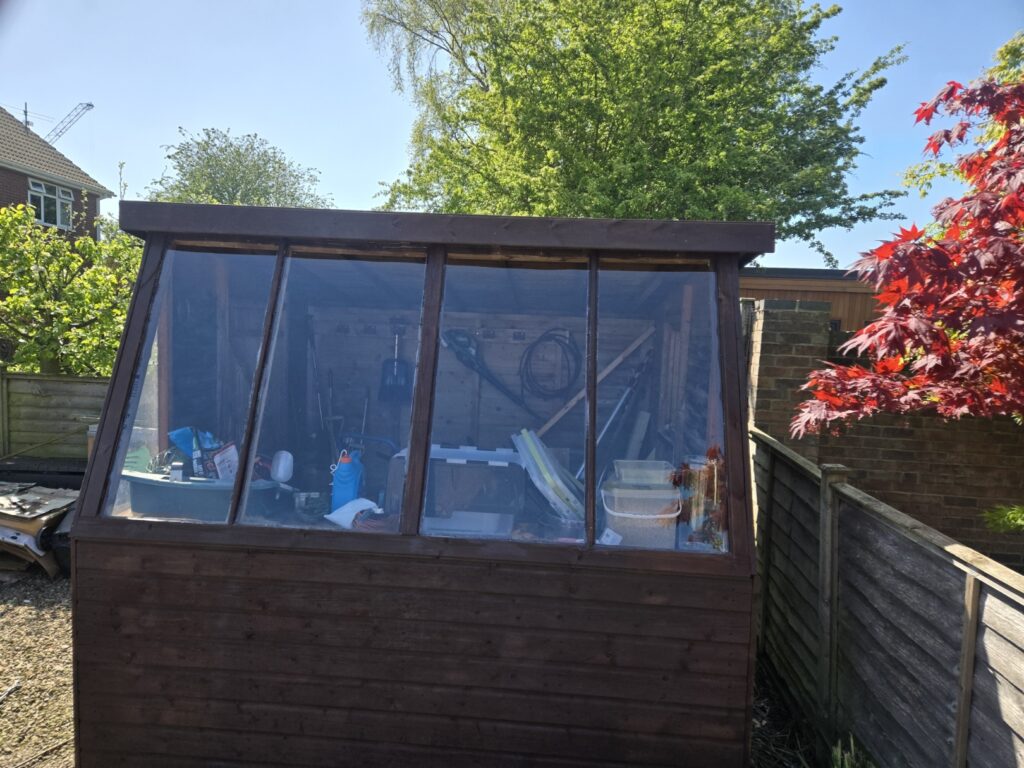 Upgraded existing potting shed. Re-roofed, some timbers replaced, new acrylic windows & treatment.